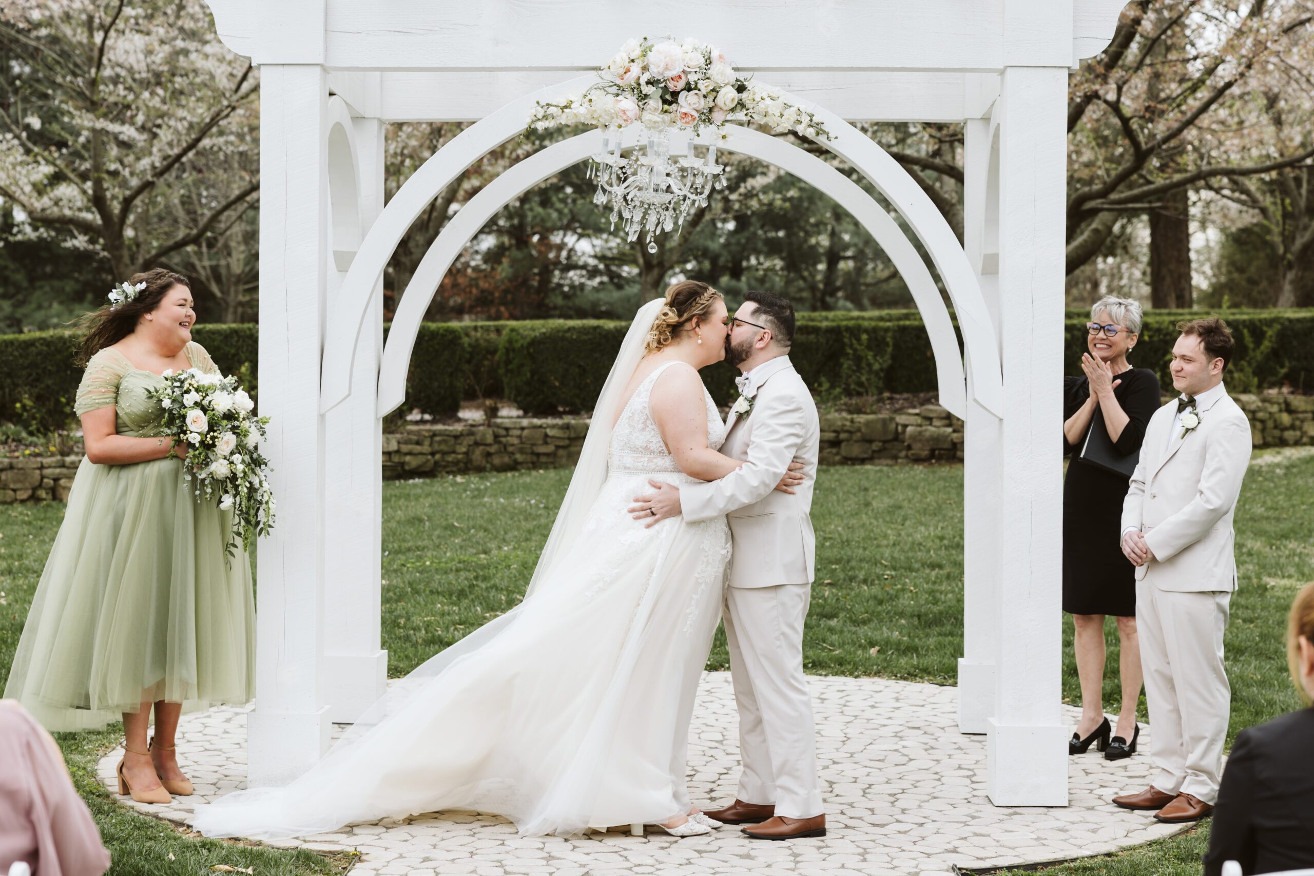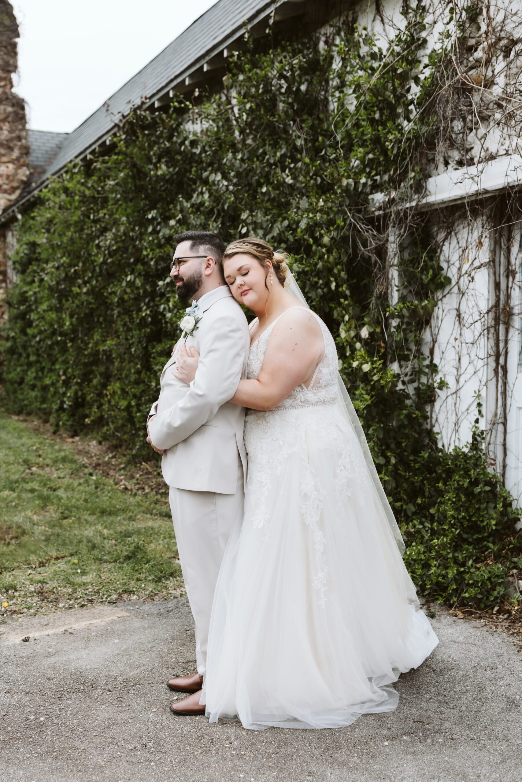 Anna & Weimer shared a first look in the driveway, under the blush of trees first blooms. When Anna and Weimer locked eyes during their first look, the overcast sky couldn’t dull the sheer happiness radiating from them.