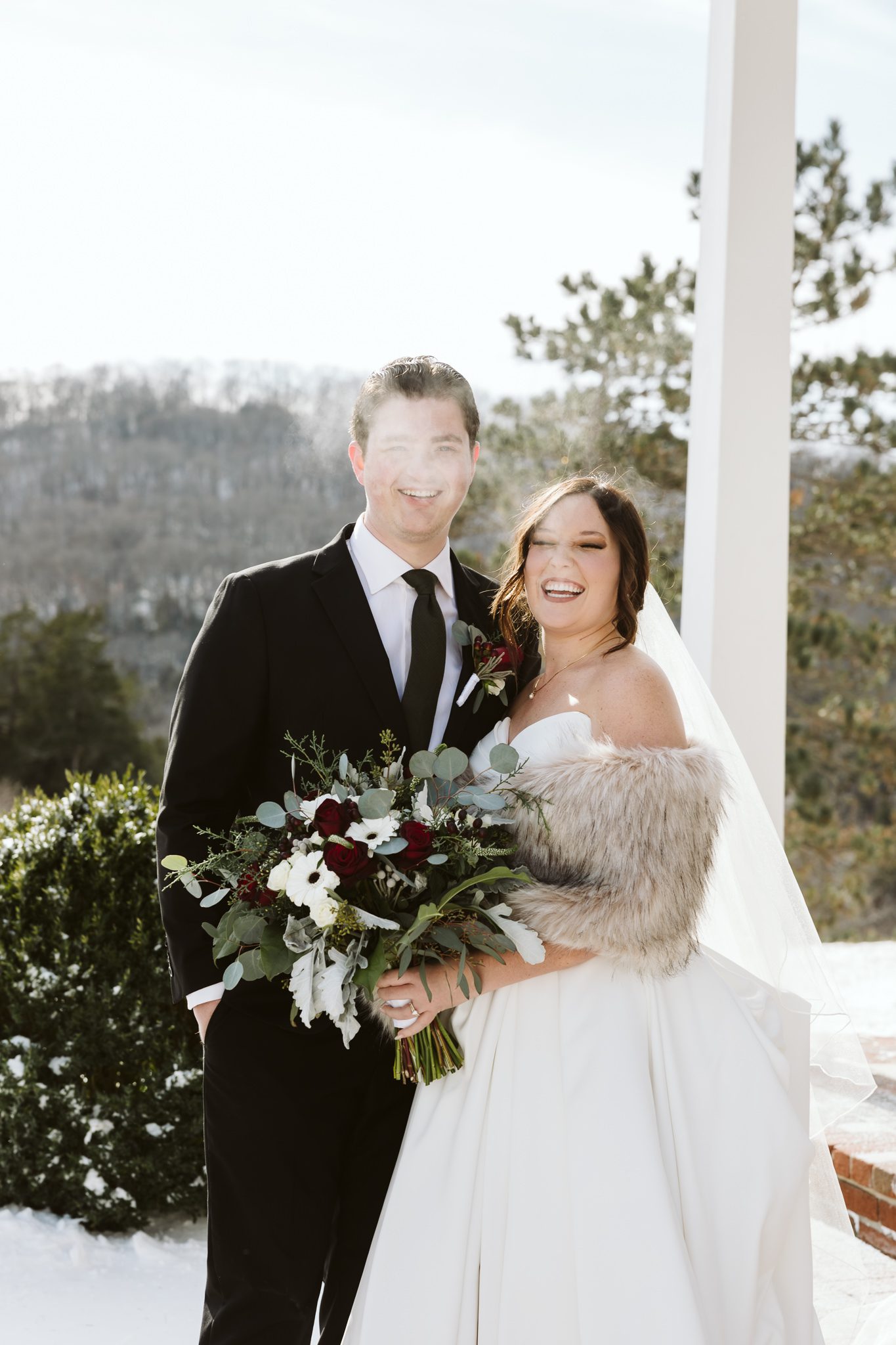 After the ceremony, we captured family photos with their loved ones before sending everyone on their way to the reception. Sabrina and Isaac were so full of happiness as we took portraits of just the two of them. They were more than happy to just snuggle up and stare lovingly into one another’s eyes. We even snuck outside for a few super quick photos (much to Sabrina’s toes chagrin, I’m sure). It may have felt like -30* but their joy at having their snow-covered Christmas wedding was worth a little frostbite according to our beautiful bride.